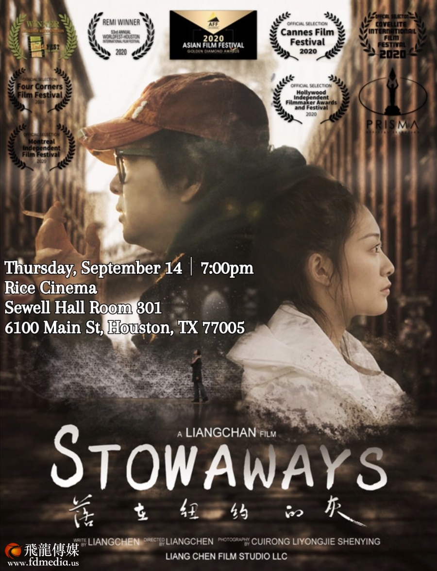 9月14日,由休斯顿著名媒体人,作家秦鸿钧的作品《单程机票》改编的电影《落在纽约的灰,英文名:Stowaway》,在莱斯大学演播厅上映。