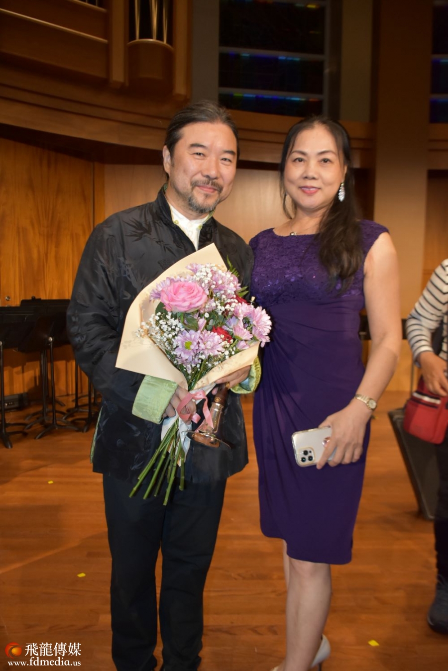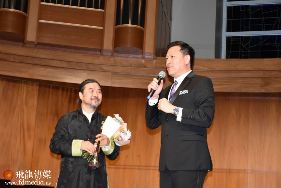 杨博士说;本场晚会除了诸多器乐爱好者的参与外, 还有许多专业演员的加盟, 他们有著名指挥家,作曲家萧辑老师:著名指挥家,作曲家,小提琴和古琴演奏家季家锦老师;专业管乐演奏家骊泽泉老师:著名二胡演奏家徐子骞老师;专业钢琴演奏狄子枫和夫君专业小提琴演奏Jose Luis Garza:专业扬琴演奏张恒,马涛夫妇,专业古筝演奏黄慧敏,还有不是专业胜似专业的"美南金嗓子"虞晓梅和美南首席竹笛闫艺修等。更要隆重介绍的是今晚音乐会的特邀嘉宾唢呐演奏家郭雅志和箫演奏家喻晓庆两位老师的加入。