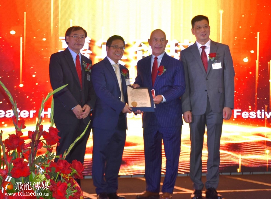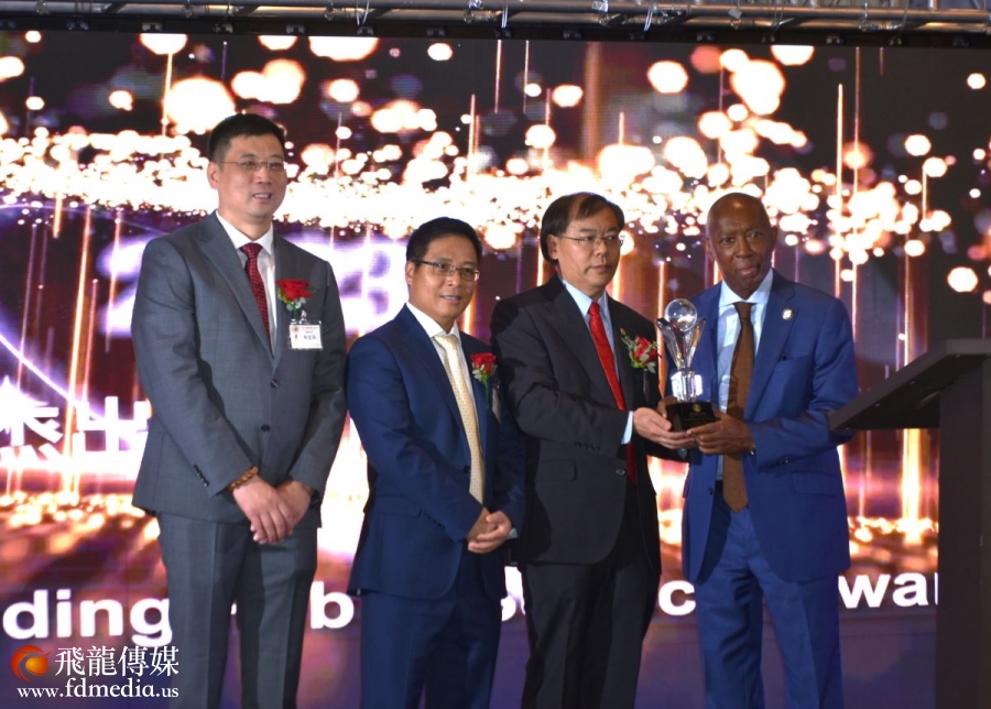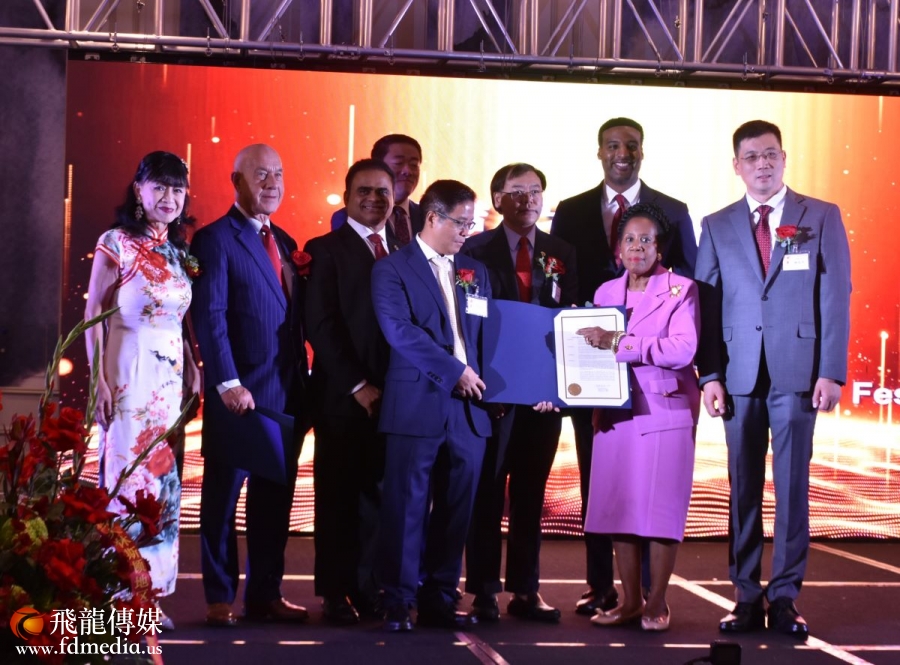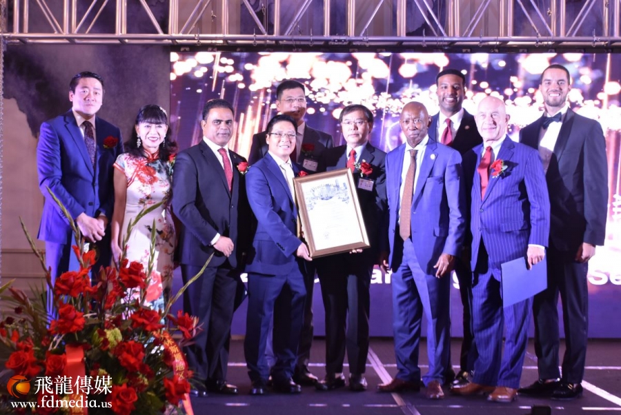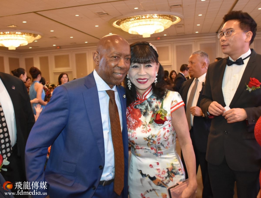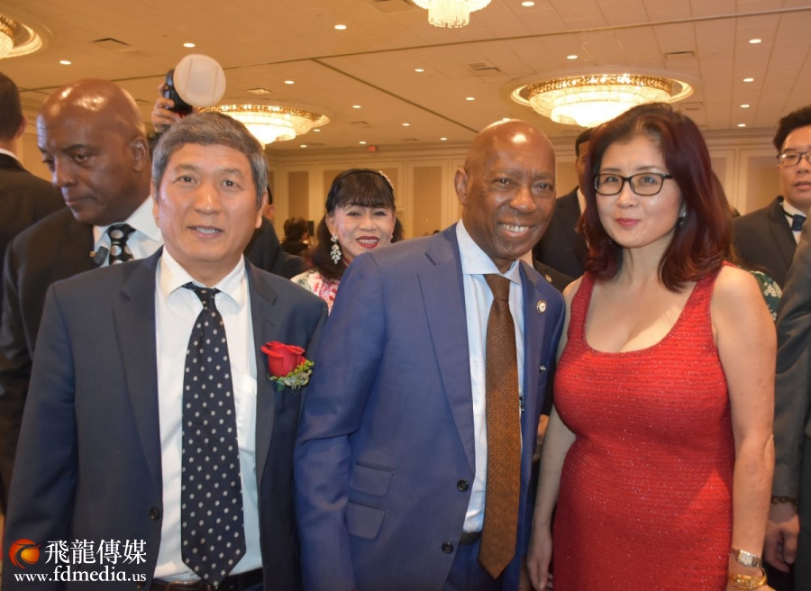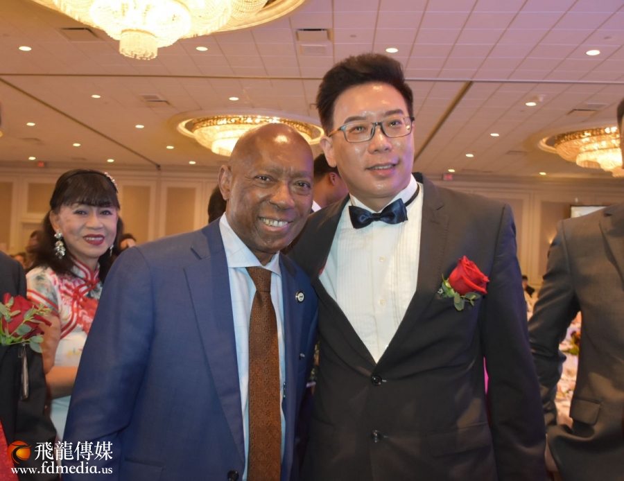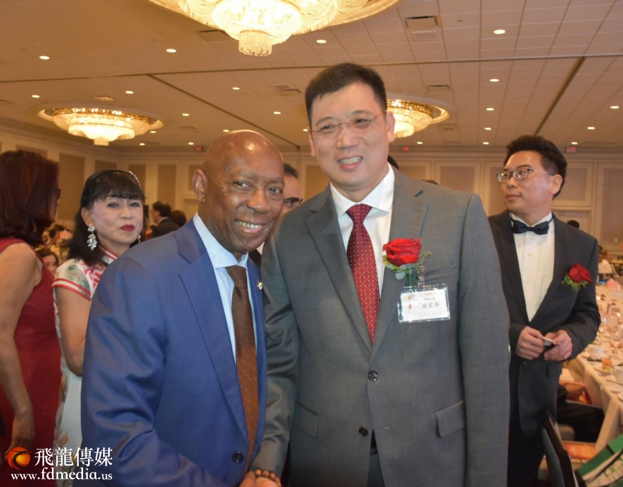 晚宴主席杨宝华与休斯顿市长特纳(Sylvester Turner)合影。