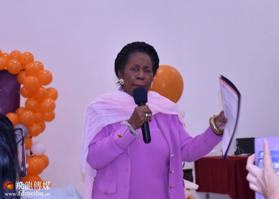 希拉.傑克森.李(Sheila Jackson Lee)從華盛頓帶來的國旗贈送給美福陽光長者活動中心,由喻斌董事長接受。