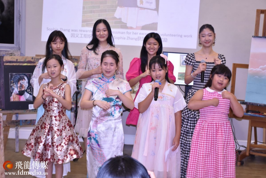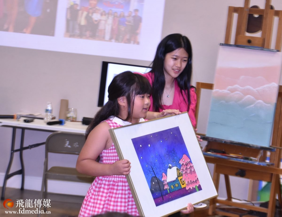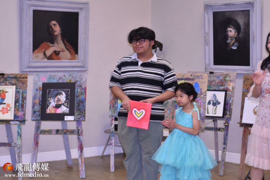节目由年仅十岁的江馨睿主持,在全体齐唱《听我说谢谢你》的歌声中开场,现场气氛被瞬间点燃!晚会邀请了国会议员助理罗玲女士致辞,她对孩子们奉献爱心的举动给予了充分的肯定和支持,鼓励小画家们要继续创作优秀的作品回馈社会。拍卖会由Isabell Gu、Sophia Zhang、Aglaia Hong主持,三位优秀的高中生踊跃的捐出了自己的获奖作品。