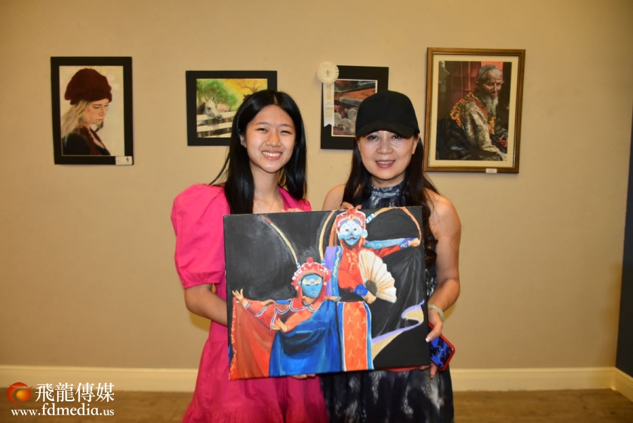 Isabell Gu的油画《川剧变脸》由一平拍得。