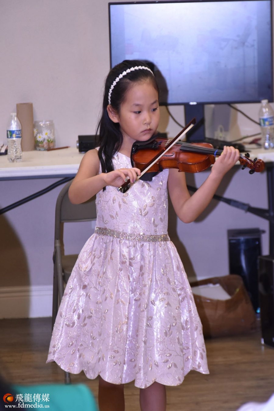 拍卖期间穿插了Olivia Zhang 的小提琴独奏、Allison Zheng和 Alina Diao的儿童时装秀,三位小朋友的表演获得现场一致好评!当Elaine Wang弹奏古筝《彝族舞曲》时,晚会现场气氛被推向了高潮。小画家们的作品瞬间被拍卖一空。而来自善学中文的张金妮、江馨睿小朋友表演的中文诗朗诵更是引起观众们的热烈掌声。