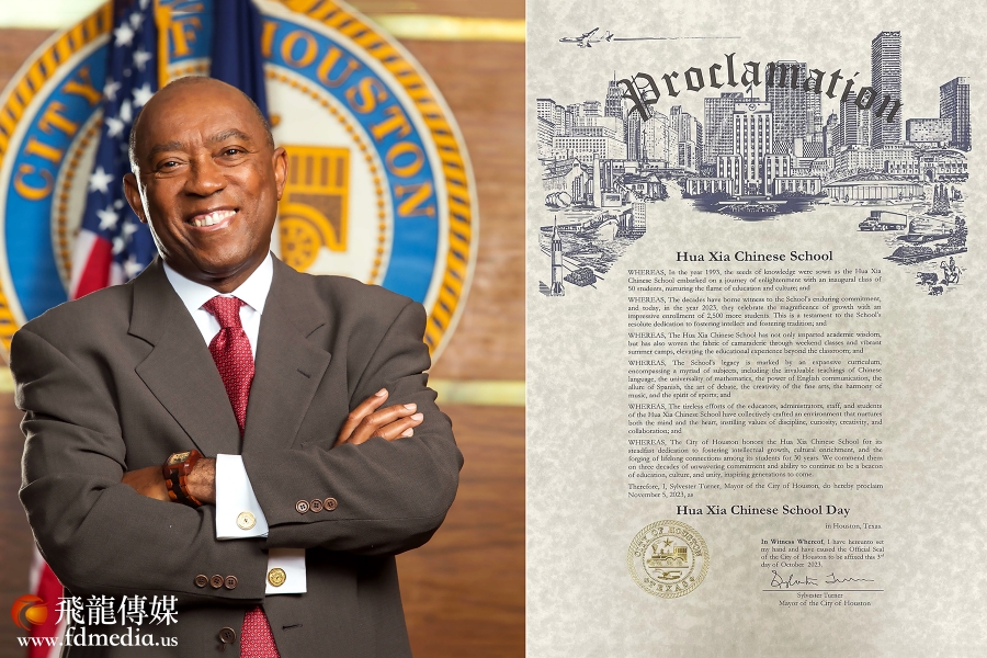 休斯顿市长Sylvester-Turner贺状“华夏中文学校日
