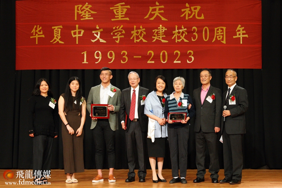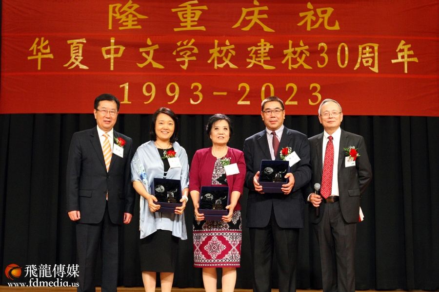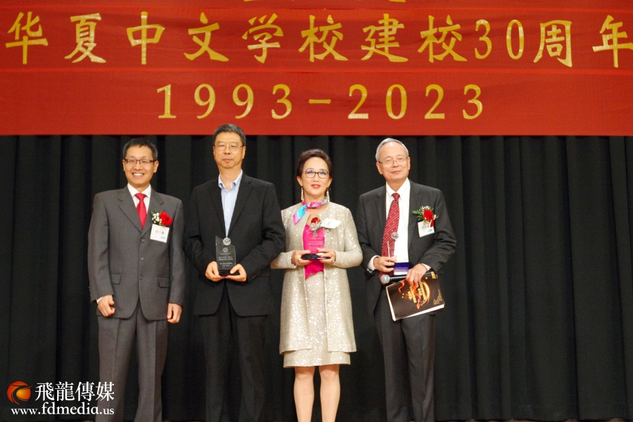 为华夏中文学校的发起人李文彦、杨家骅、常湘滨三位先生颁发了特别纪念奖。