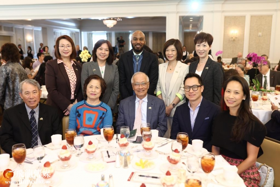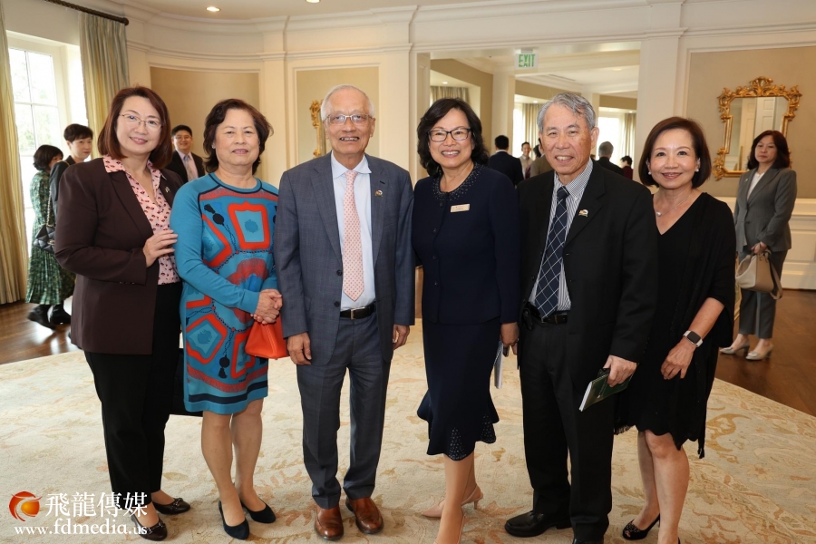 圖左起:恒豐銀行公共事務部經理 Jennifer Zhou、吳夫人及吳文龍董事長、文化中心主席華啟梅、恒豐銀行總裁張永男及夫人合影留念。