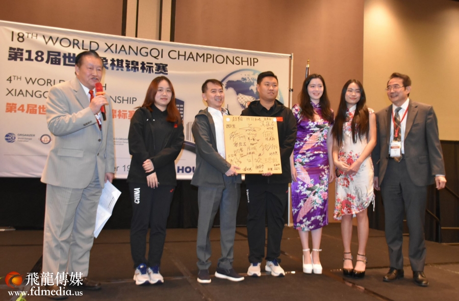 现场进行了本届冠军签名棋盘的拍卖,拍卖金额捐给休斯敦象棋组委会。
