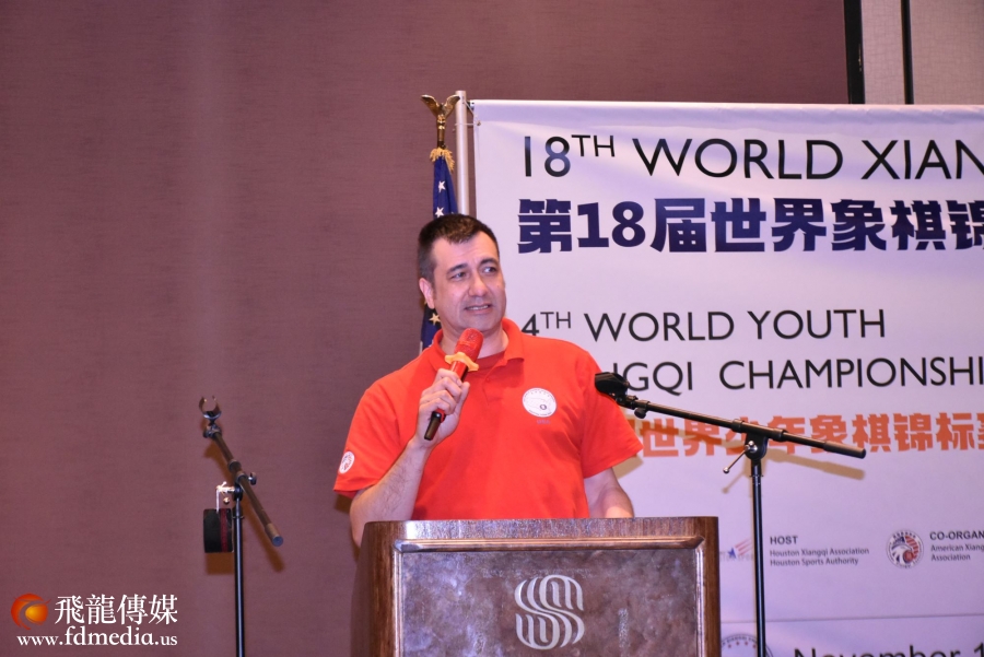 输棋不输阵,作为东道主美国队组成了历届最多的选手出征。选手梅俊翰(马修·博埃)获得男子个人第19名的成绩,他代表本届世锦赛参赛选手上台,分别用中英文发表参赛感言!