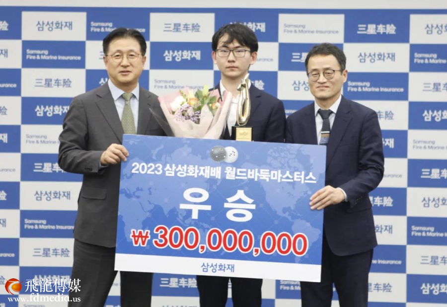 丁浩以2比1的总比分赢得决赛的胜利,获得冠军奖金3亿韩元 图源 中国围棋协会