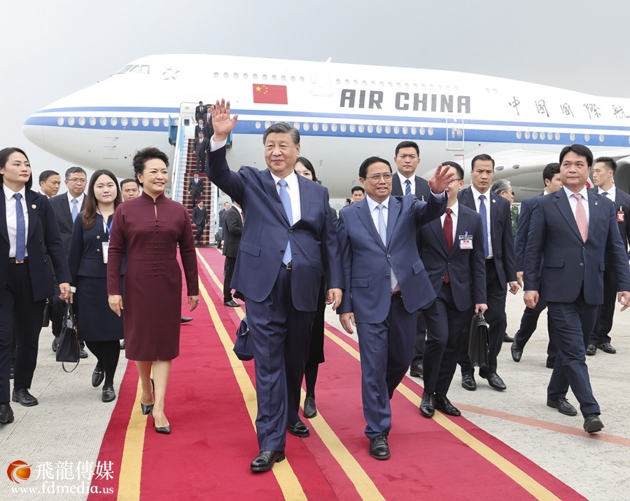 当地时间12月12日中午,中共中央总书记、国家主席习近平乘专机抵达河内,应越南共产党中央委员会总书记阮富仲、越南社会主义共和国主席武文赏邀请,对越南进行国事访问。