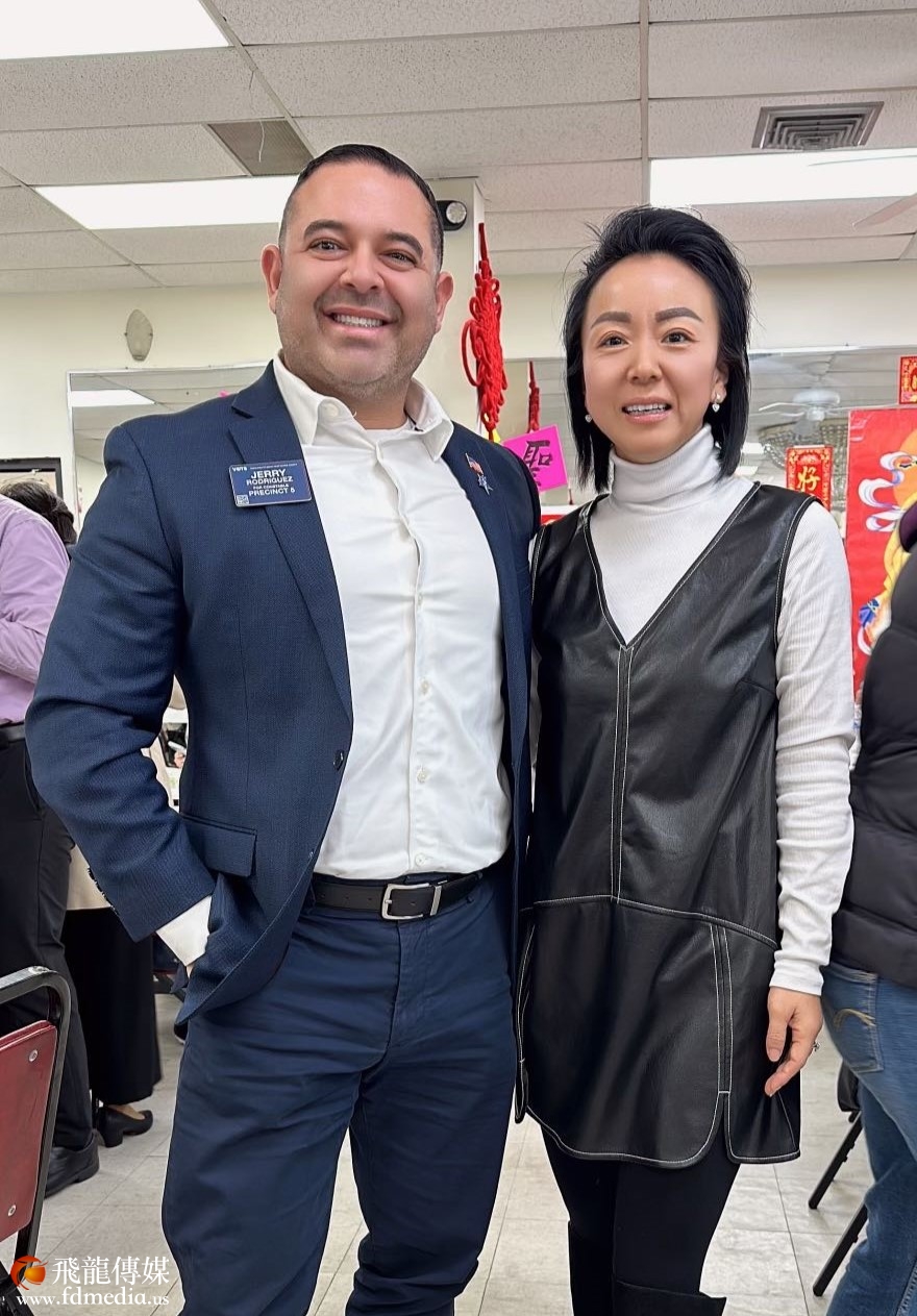 第五分局杰瑞·罗德里格斯(Jerry Rodriguez)警官与Tina Pei合影。
