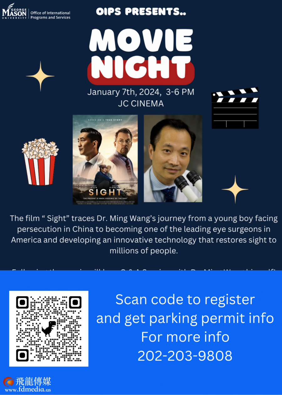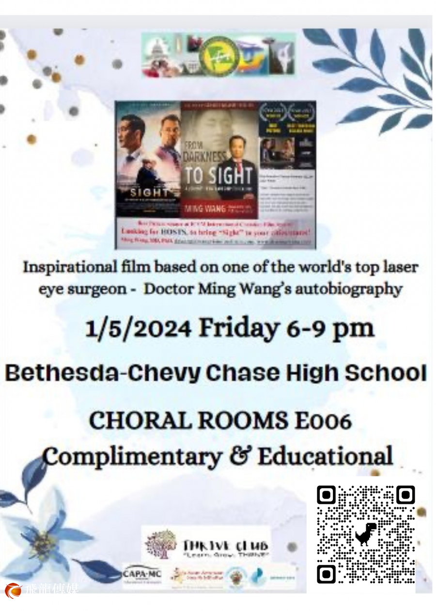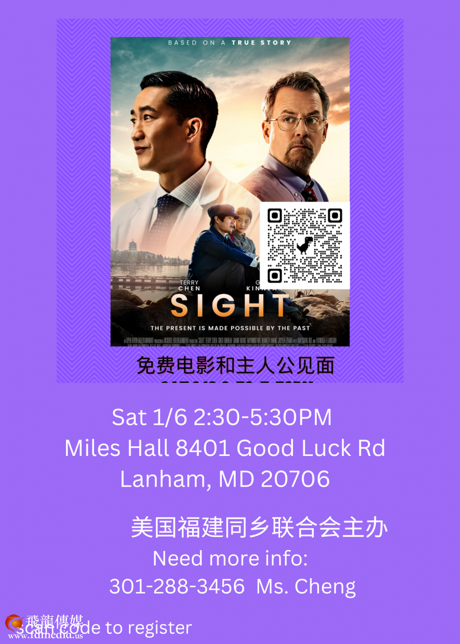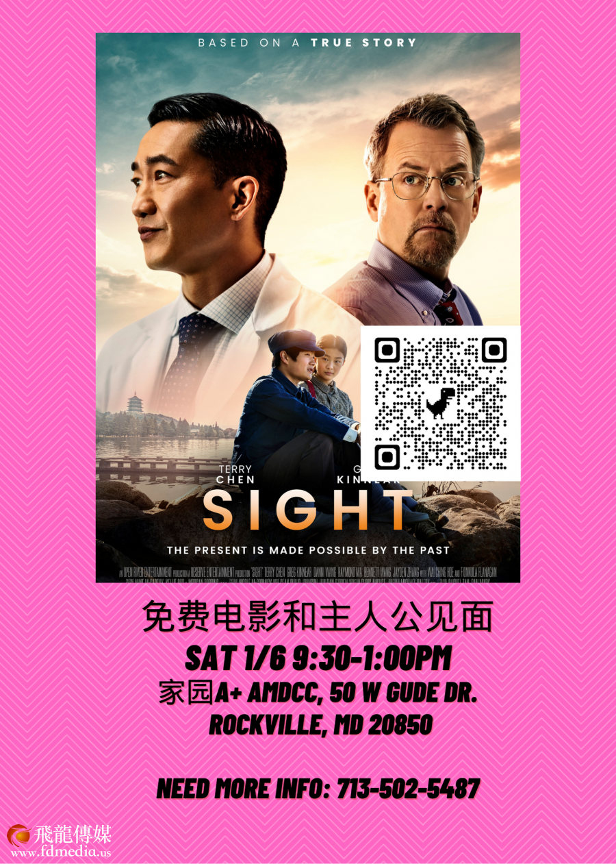 新年伊始,2024年1月5-7日,享誉美国的眼科手术医生王明旭和以他为原型的电影Sight又开始全国行。 新年首场即将到达马里兰和弗吉尼亚地区,免费播放Sight 电影并且和观众互动。 为了方便英语不好的华人观众,从去年12月初波士顿巡演开始,Sight 电影就加上了中文字幕。这是一个非常重大的变化,使得英语没有那么好的华人观众有机会去看电影。