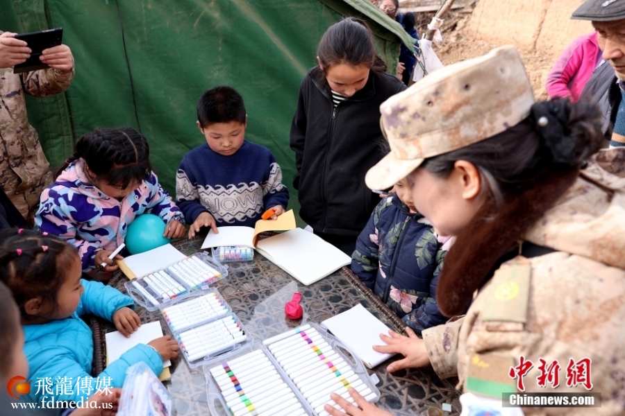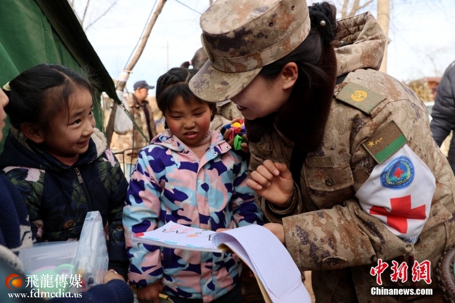 12月26日,西宁联勤保障中心第九四一医院高原医疗队来到民和县中川乡前进村为地震受灾儿童开展情绪疏导和心理抚慰消除恐慌、不安等情绪。同时为灾区民众送去免费应急药品。
