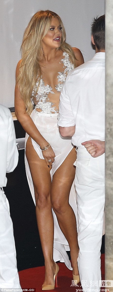 31岁的美国女星、卡戴珊家族成员科勒-卡戴珊(Khloe Kardashian)参加家族聚会,她真空透视装亮相,布条裙随风摇摆无法蔽体。而她似乎喝多了,举止大胆,毫不介意。