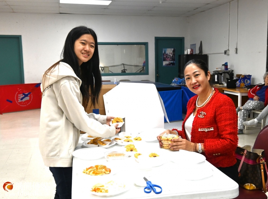 中国人活动中心副执行长陈皙晴在做接待。