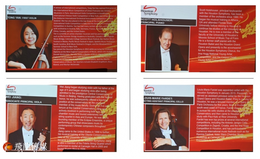 上左:中国人副董事长杨万青、上右:晚会总导演季家錦。下左:副导演高晓慧、下右:艺术总监Summer Song 相继介绍了晚会的筹备情况。