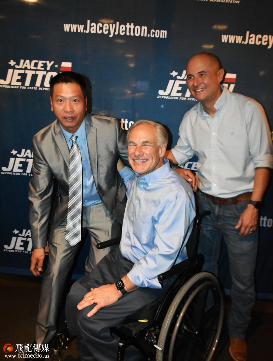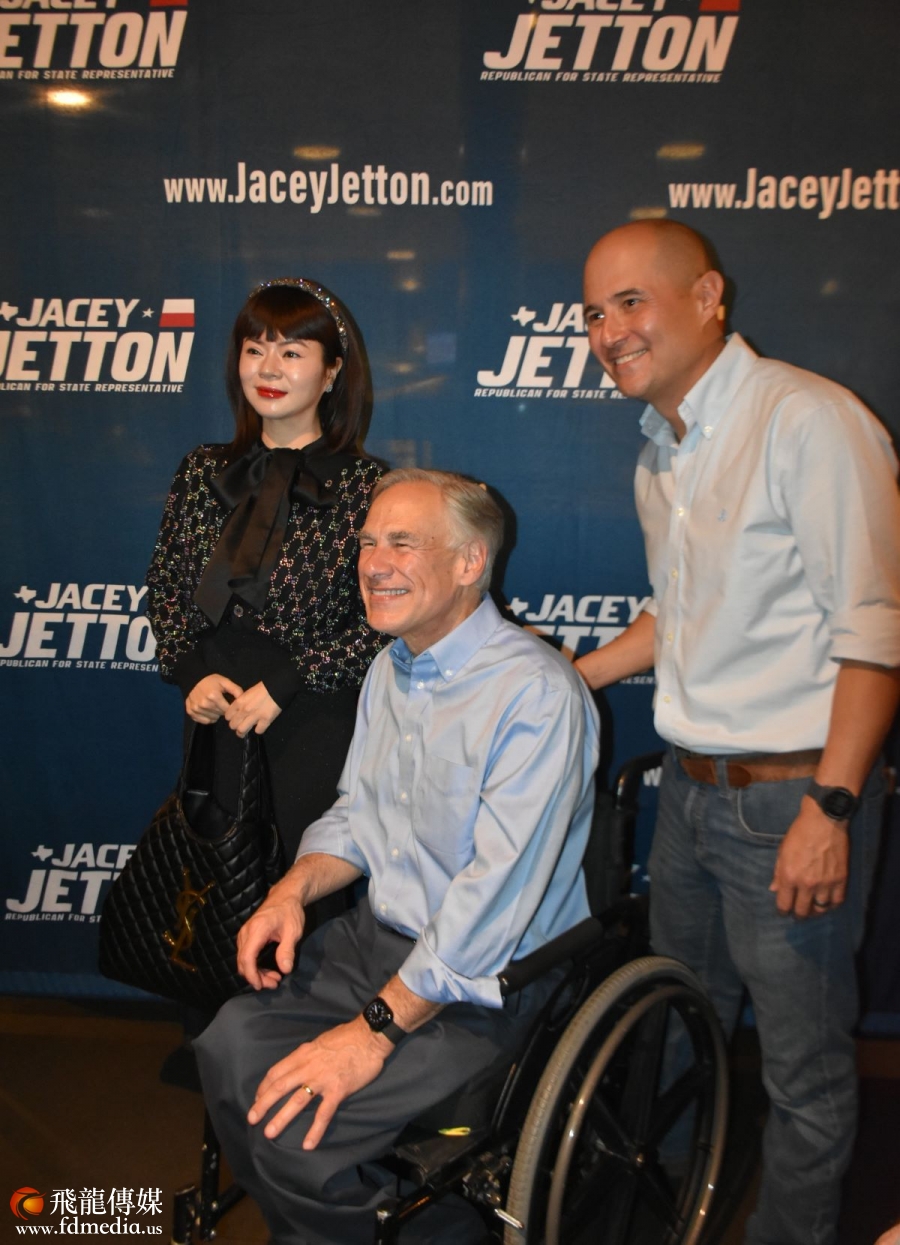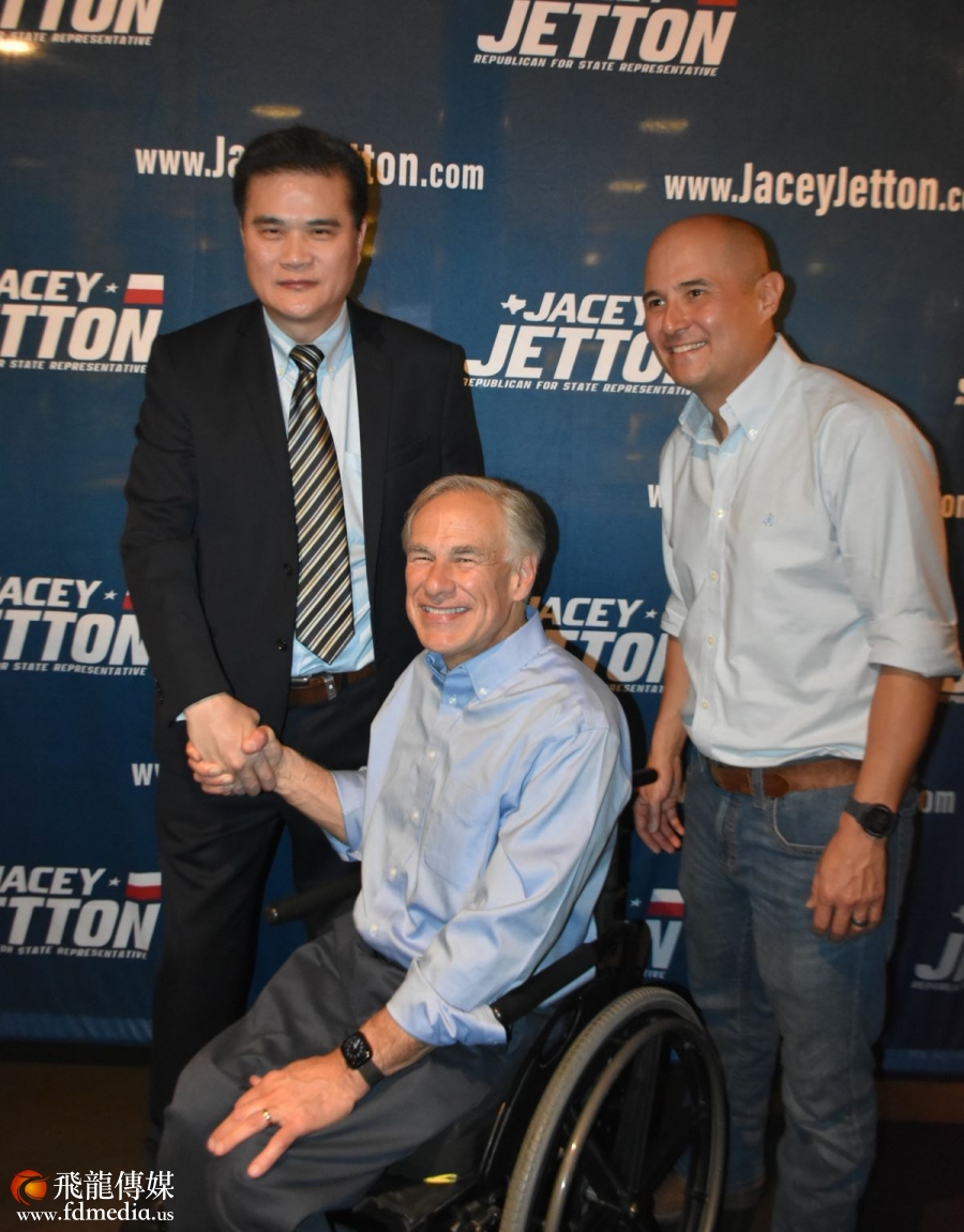 在1月11日竞选活动中,州长格雷格·阿博特亲临休斯敦为杰西(Jacey Jetton)站台。