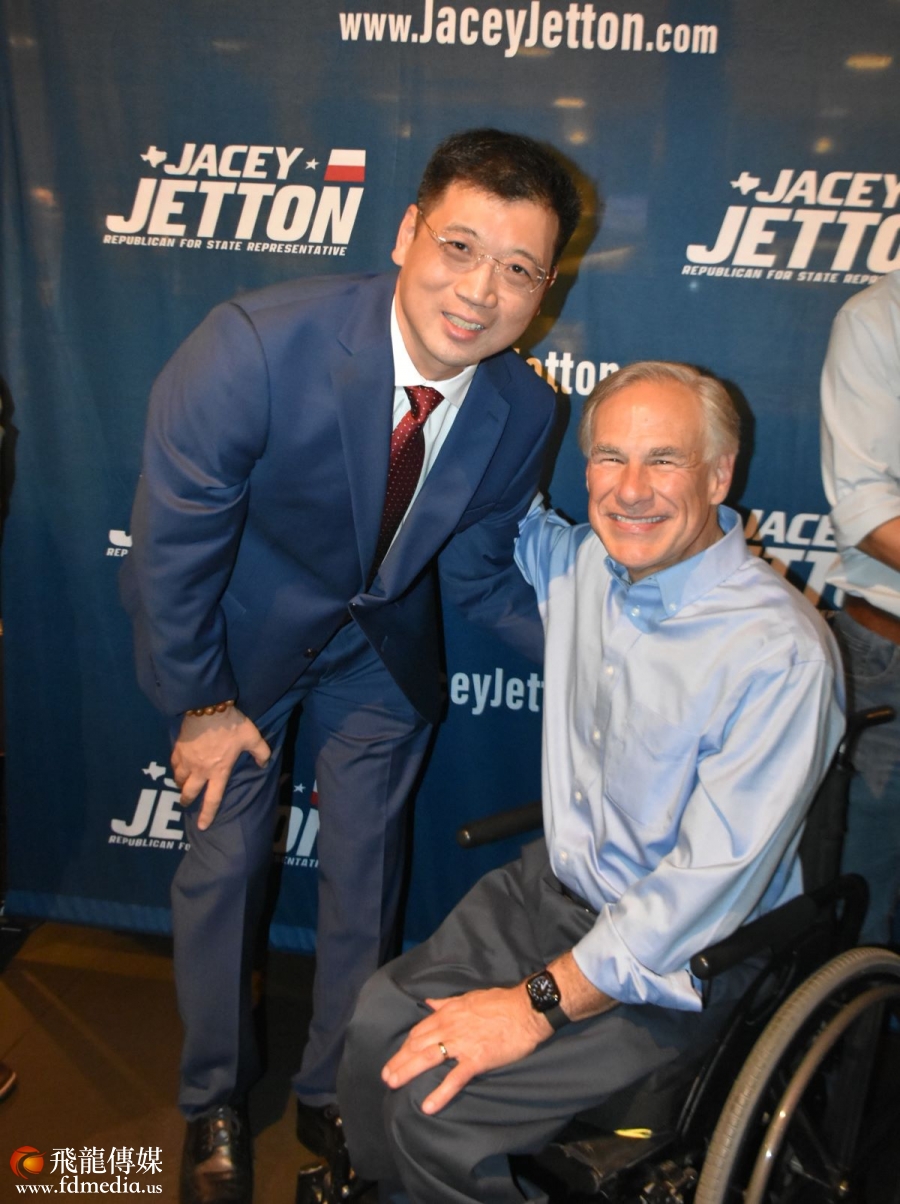 中国人活动中心副董事长杨宝华与州长格雷格·阿博特合影。