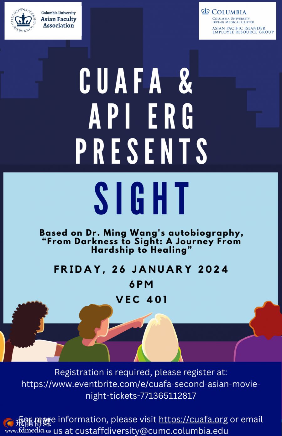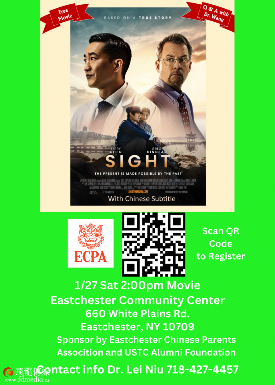 新年伊始,2024年1月26-28日,享誉美国的眼科手术医生王明旭和以他为原型的”电影Sight2024年全美国义演“活动即将到达世界最大的城市纽约。 这是新年全国行的第三个城市。王医生即将为大纽约地区的观众免费播放Sight 电影并且和观众互动。 为了方便英语不好的华人观众,从2023年12月波士顿巡演开始,Sight 电影就加上了中文字幕。这是一个非常重大的变化,使得英语没有那么好的华人观众有机会去看电影。