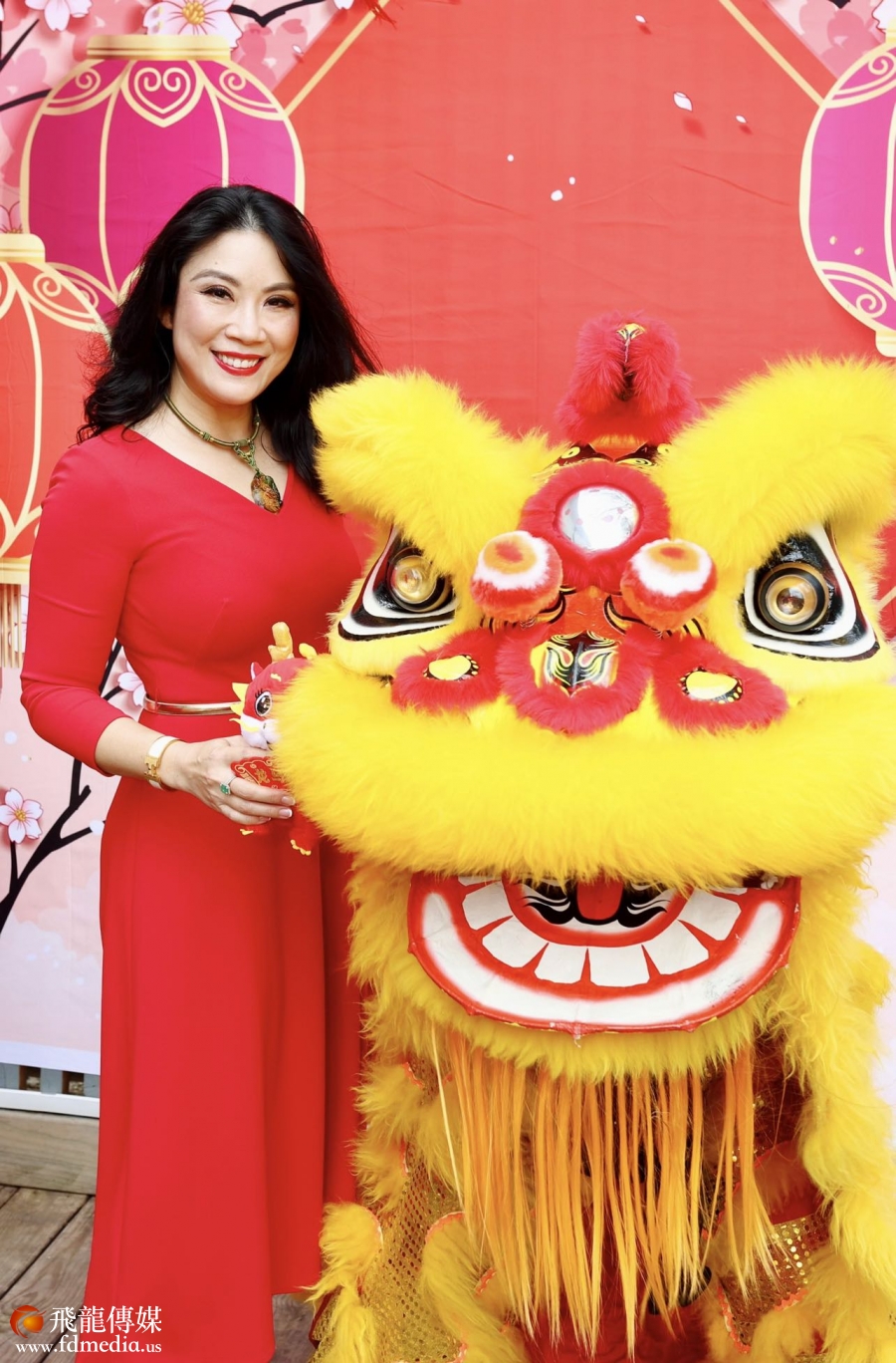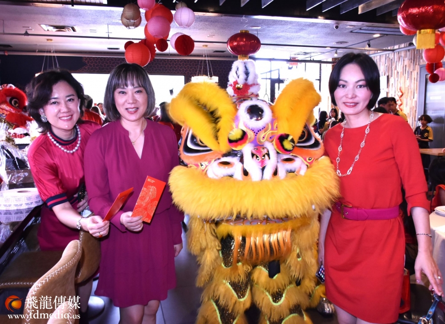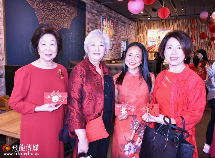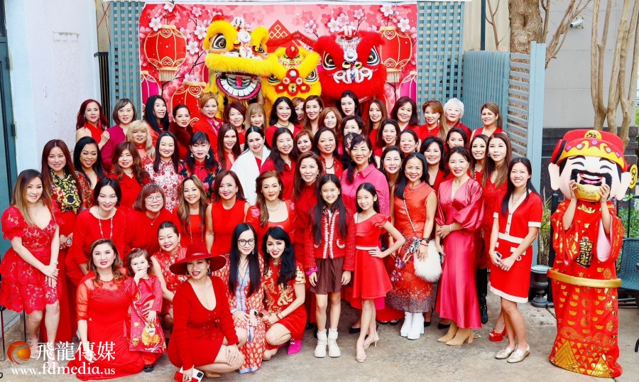 当天Downtown的老四川餐厅张灯结彩,锣鼓喧天,来自休斯敦各界的60多位杰出亚裔女性,有华裔、越南裔、日本裔、印度裔等,她们身穿代表幸运的“大红色”服饰,热情洋溢,与醒狮团的表演连城一道风景,现场充满了节日的喜庆。