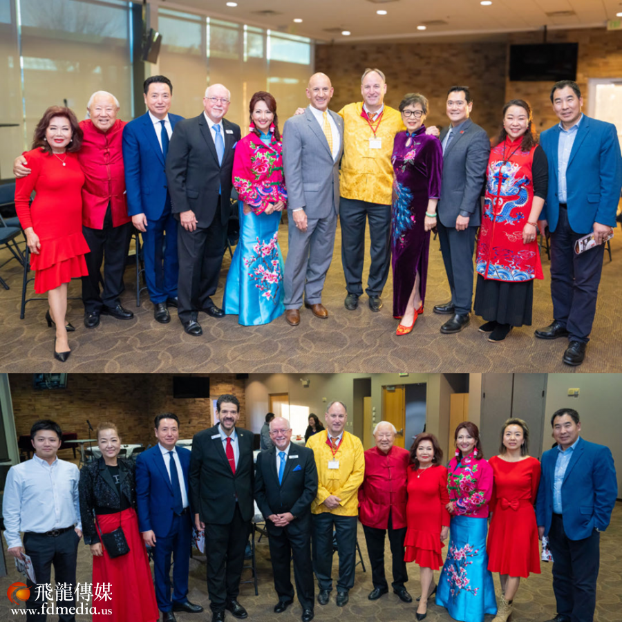 Representative Matt Shaheen、Plano代理市长Maria Tu、Plano市议员Rick Horne,Richardson 市议员、还有达福台商会的现任会长Laurence Chiang、前任会长王嘉铃、方芸芸、恒丰银行达拉斯赵发华副总裁、李震台贷款部副总裁、Sally Chiang 达拉斯Plano分行副总裁、AT&T 高级副总裁David Lu、美国飞龙国际文化传媒集团副总裁裴习梅女士、美中商会前会长顾天鹏、侨界领袖谷祖光先生及夫人、达拉斯美中专业人士协会前会长闫光及各同乡会会长均到场带来了新春的祝福!