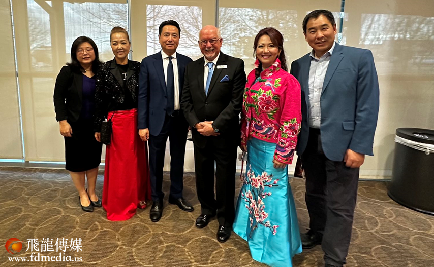下图从左到右:徐修、刘金红、顾天鹏、Richardson 市议员Dan Barrios 、Plano Councilman Rick Horne、Bruce Nordstrom、古祖光、Mary、佟天乐、媒体总监裴习梅、孙保京