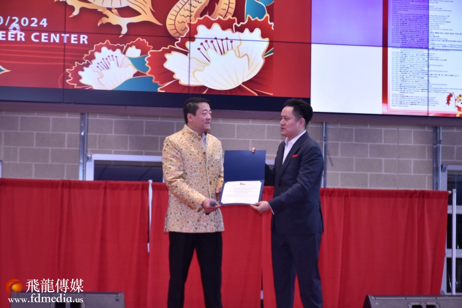 州议员吴元之亲临现场,送来褒奖状,由主持人马健代收。