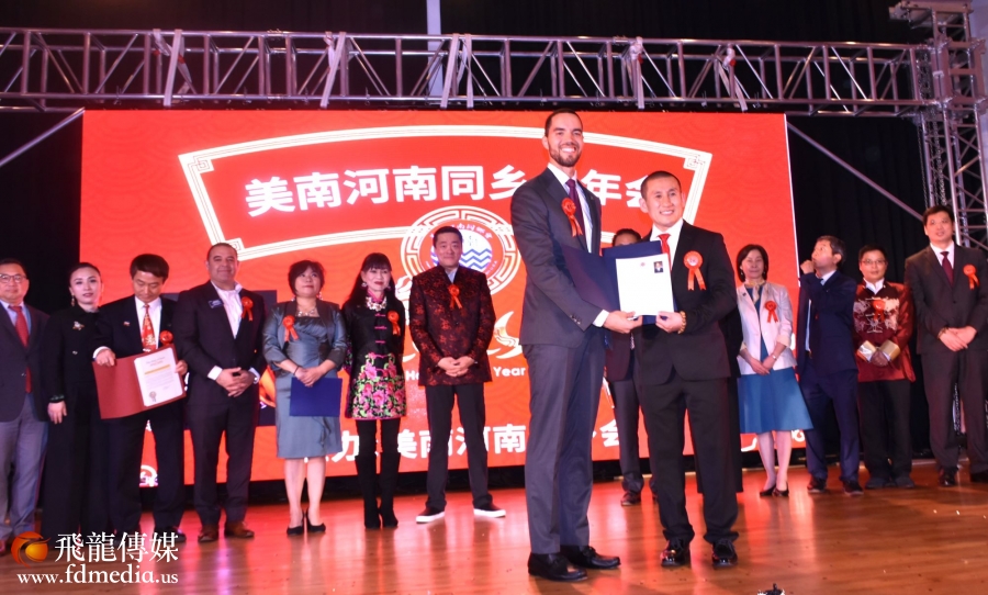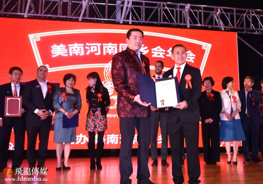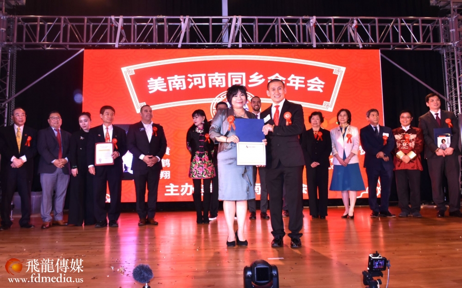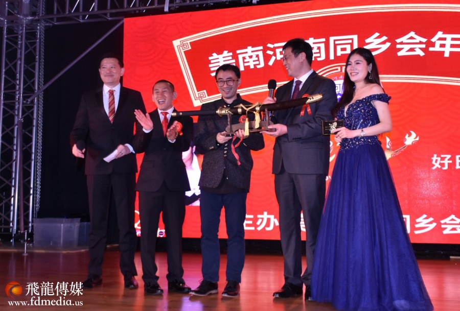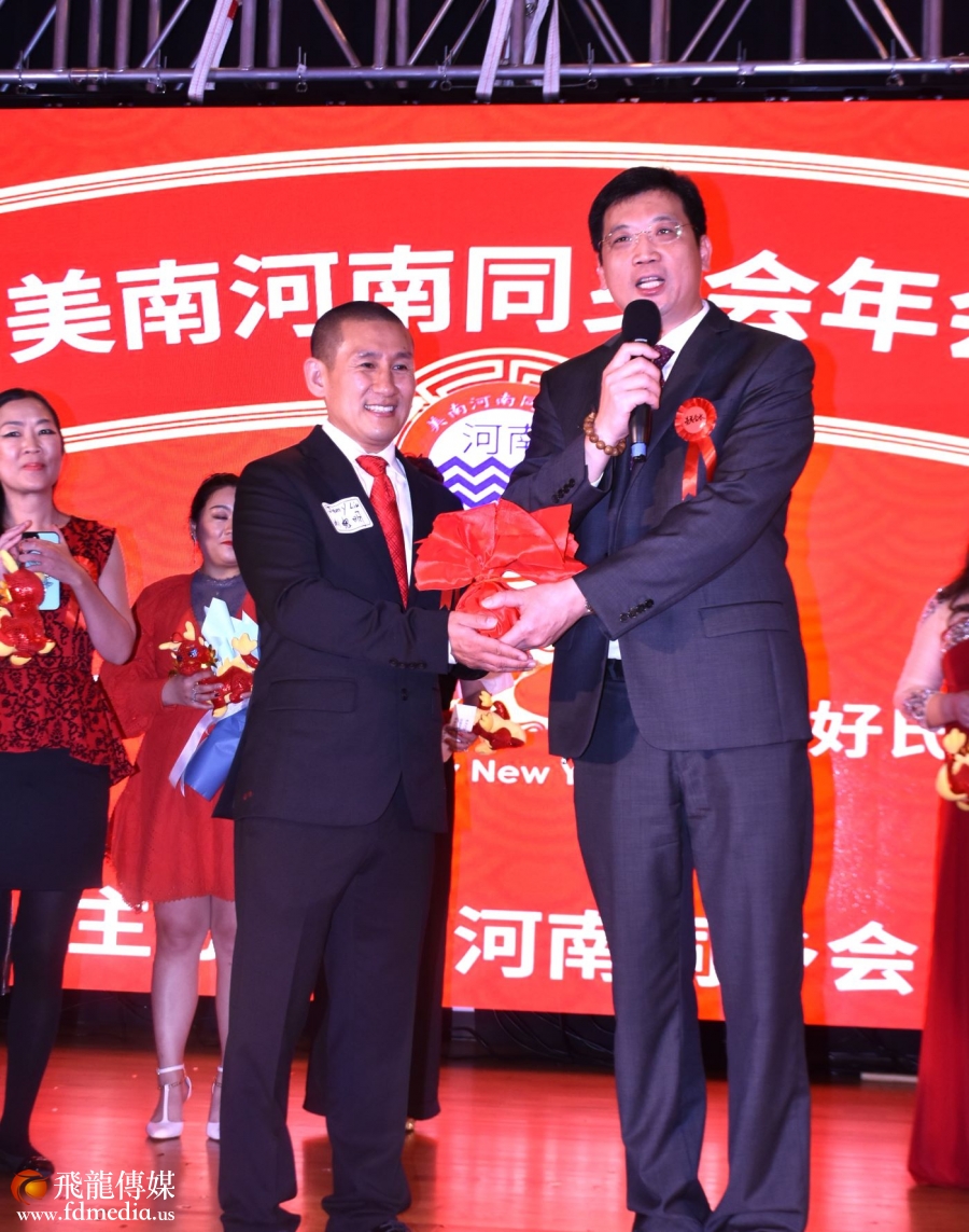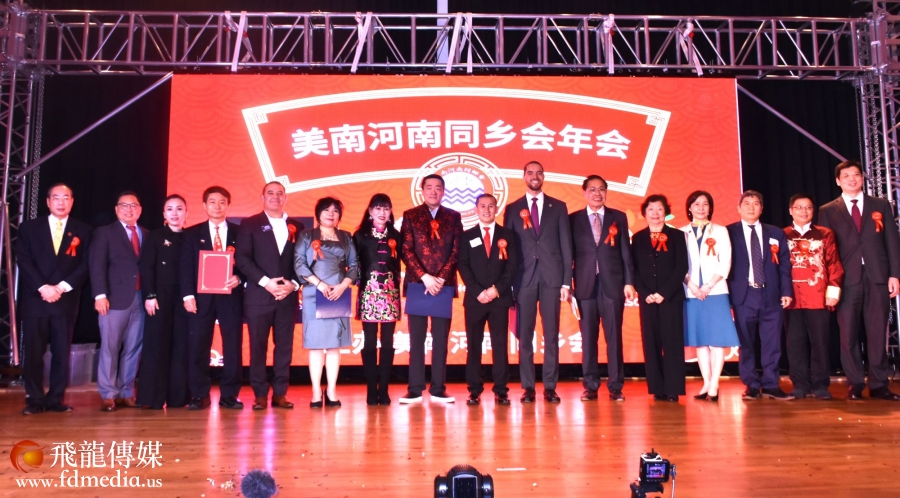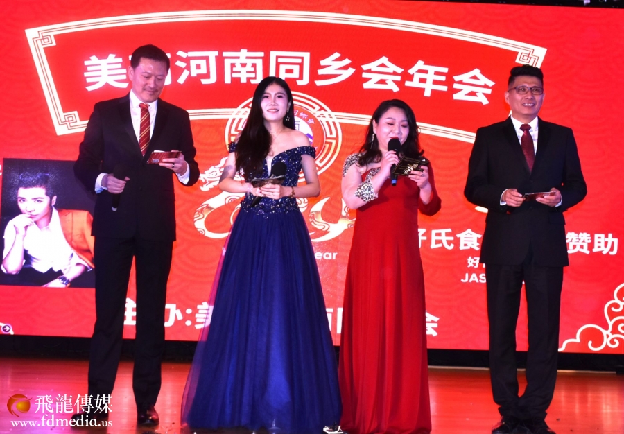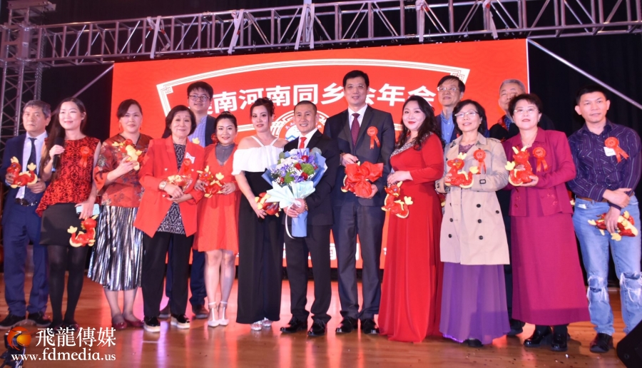 2月11日晚,美南河南同乡会举行庆祝龙年新春年会暨新老会长交接仪式。