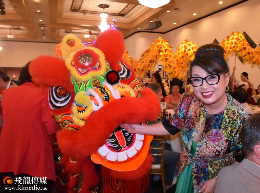 著名地产经纪人SUsan Chang给舞狮送红包。