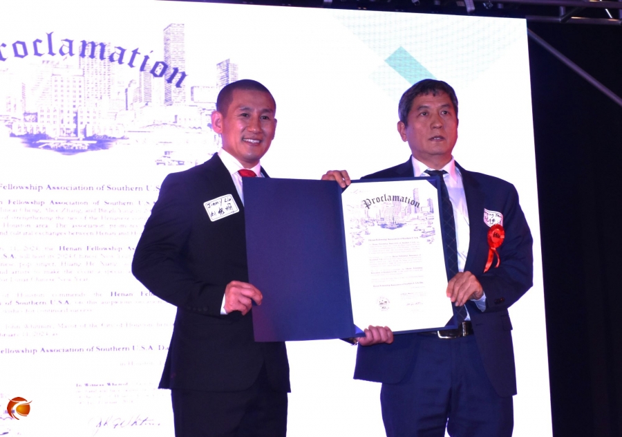市长John Whitmire (约翰·惠特麦)特别颁发褒奖状,由河南同乡会前会长杨德清代赠。
