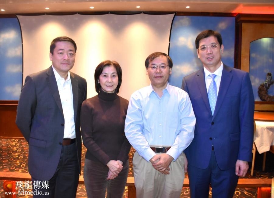 德州州議員吳元之(Gene Wu)、市政府社區協調員芮久玟Joanne、中國人活動中心董事長範玉新、中心副董事長楊寶華合影。
