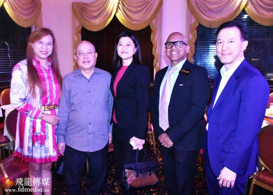 休斯頓80-20 PAC理事Brian、國人活動中心董事長範玉新、Kathy Cheng 律師、26區州代錶(State Representative District 26)Jacey Jetton、中心副董事長楊寶華合影。