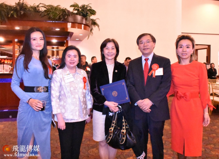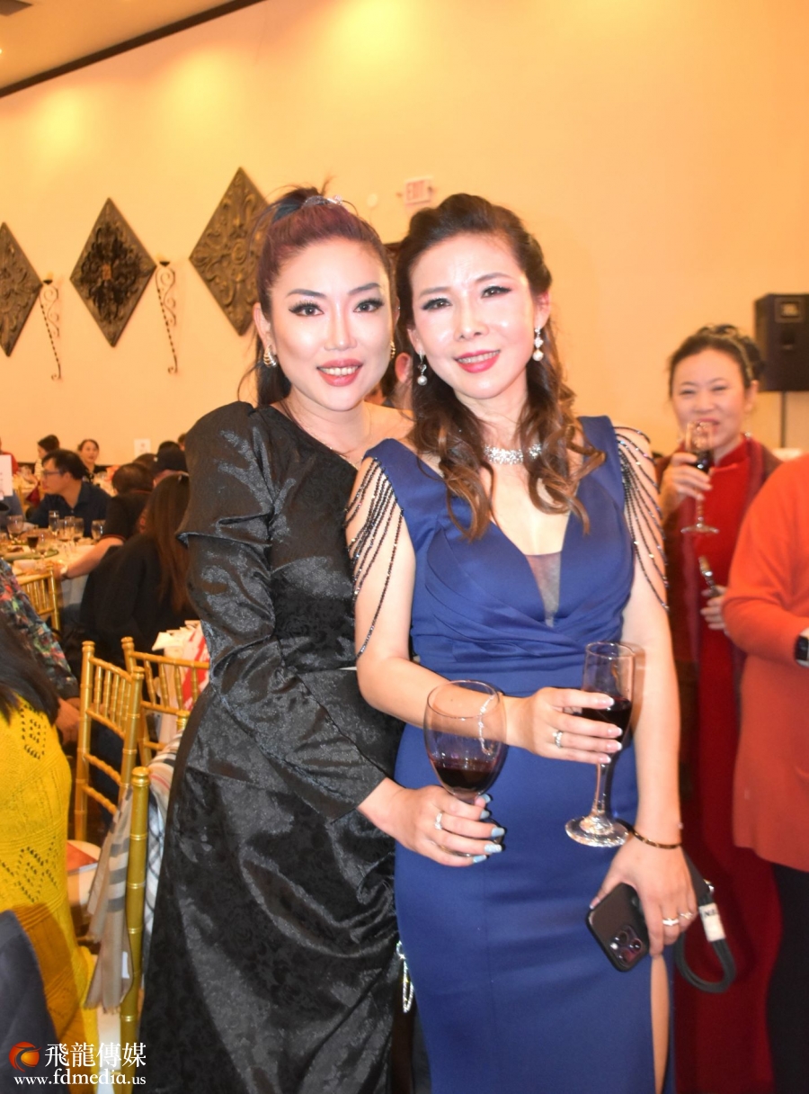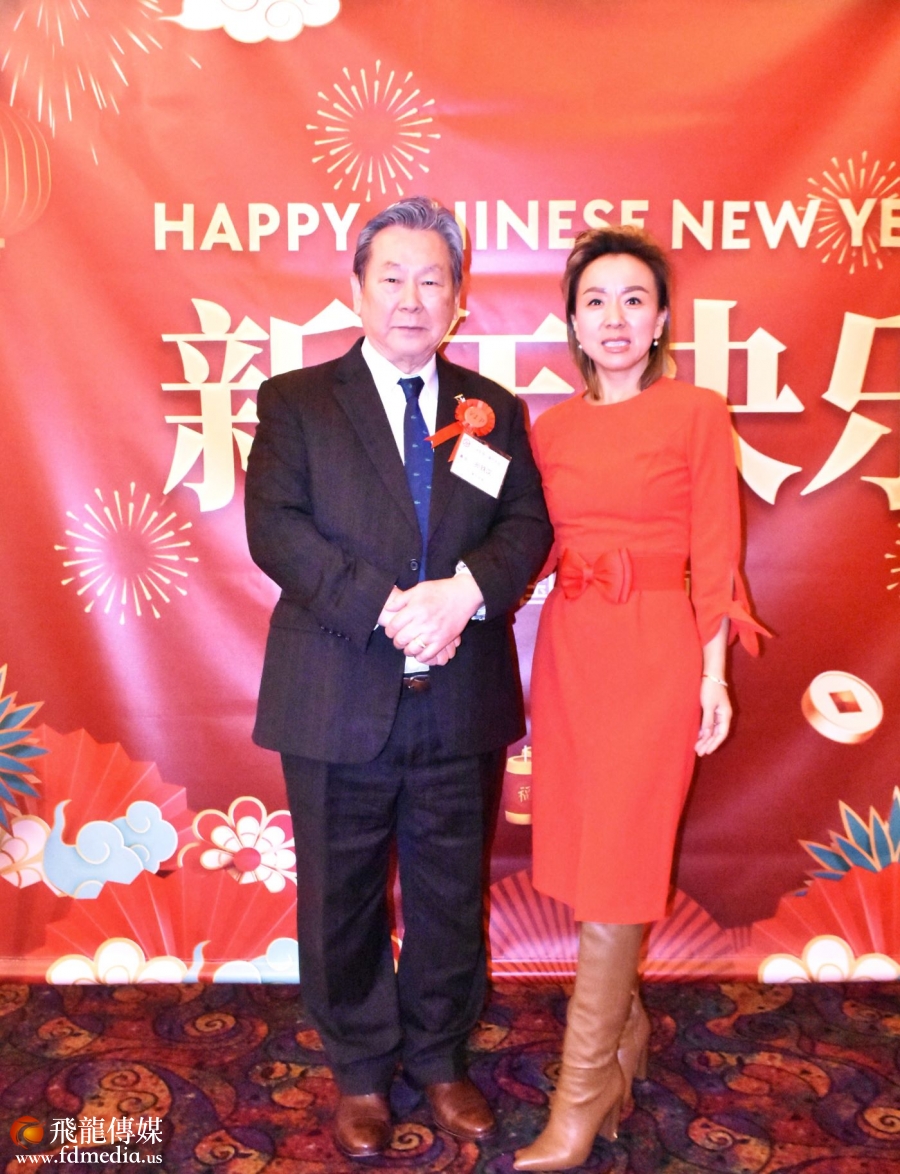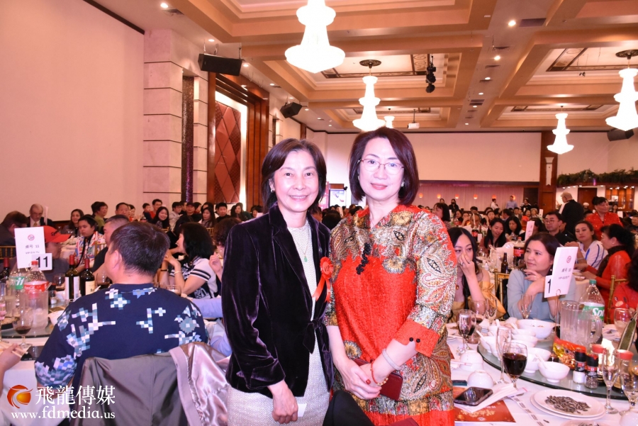 著名地产经纪人阿芳和中国人活动中心前董事长张亦勤合影。