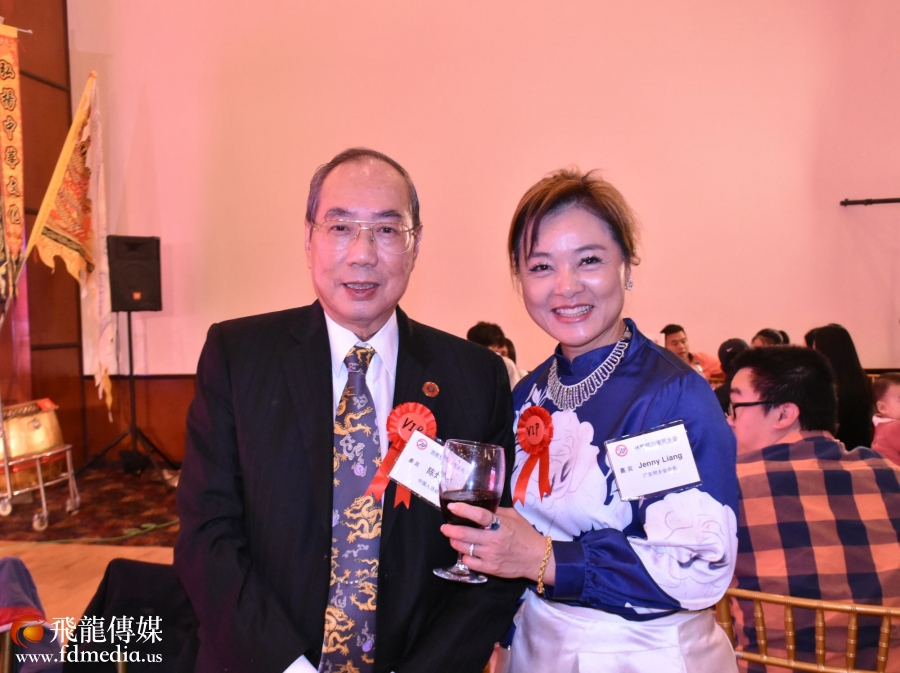 著名侨领陈灼刚和广东总会会长Jenny Liang合影。