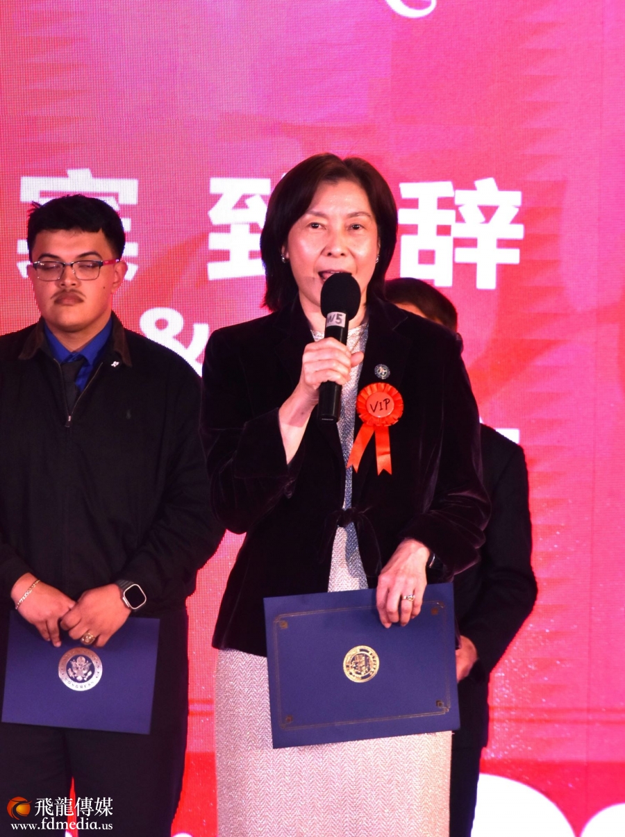 川渝同乡会会长卿梅致辞!她说;我要向各位致以最诚挚的问候和祝福,祝愿大家在新的一年里身体健康、工作顺利、家庭幸福。感谢大家对川渝同乡会的支持和厚爱,是你们的参与和奉献,让我们的同乡会不断发展壮大。她感谢老乡及休斯顿各界对她的支持,在这充满喜庆的龙年,我们共同迎来了一个充满希望和机遇的新时刻,让我们携手共度,共同创造一个难忘的回忆。