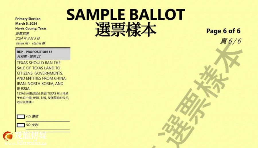 TEXAS 州应该禁止售卖 TEXAS 州土地给予来自中国, 伊朗, 北韩, 及俄罗斯的公民,政府及机构。