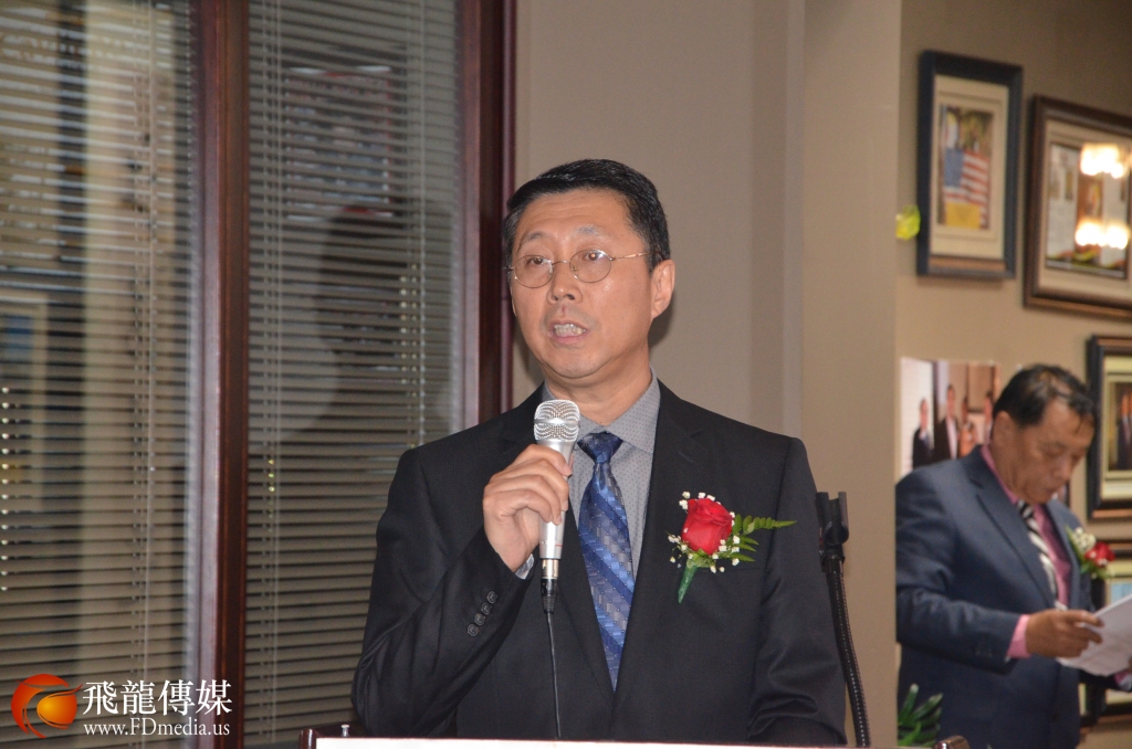 美国德州中国东北总商会Richard Qi 理事长致词。他感谢在休斯顿的所有东北老乡,以及其他兄弟社团的大力支持,并欢迎各界精英加入,求同存异、共同发展。
