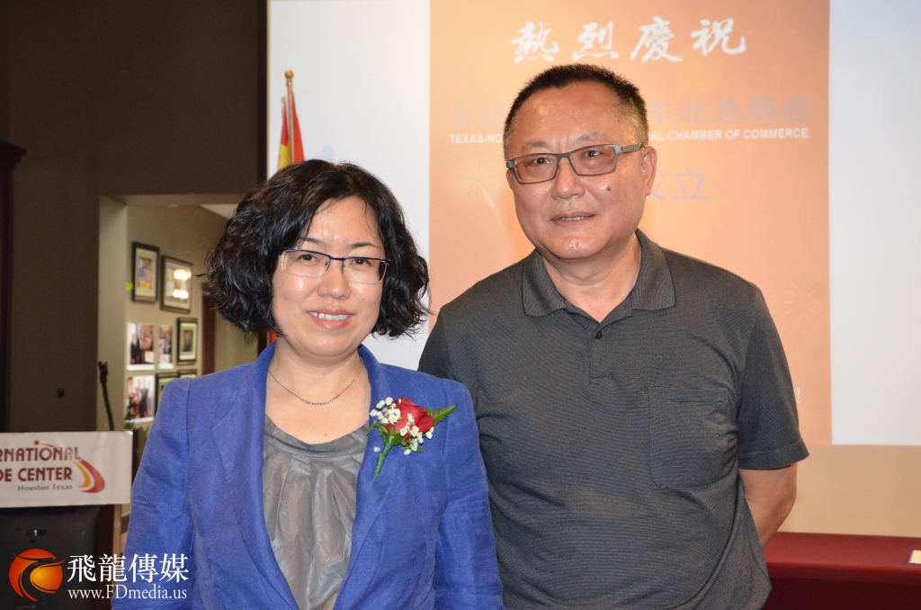 中国驻休斯顿总领馆刘红梅副总领事和来自东北的企业家Michael Qian合影。