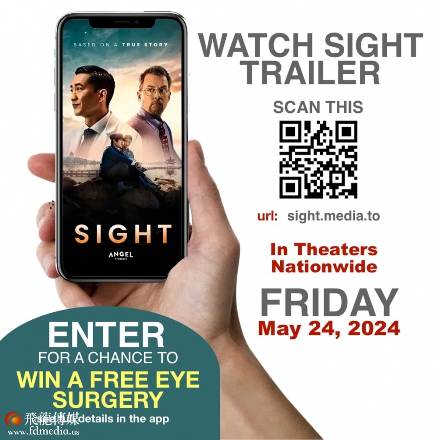 中国新年前一个星期,2月2日Deadline 发表新闻,Angel Studio 购买了Sight电影的版权,并且选择在美国亚裔月5月24日(国家纪念日周末)将在美国各地影院播放。 这对美国观众和华人提高自己的社会影响力是一个大好消息!