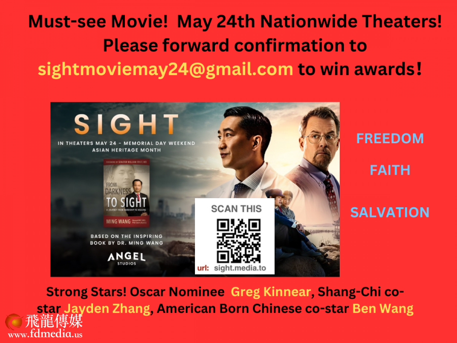 Sight 电影是一部激动人心的获奖电影, 5/24 即将在全美各大影院播放。 Sight不仅是一部电影,更是一个人心灵的觉醒,是对人类从黑暗到光明的深刻诠释。