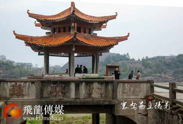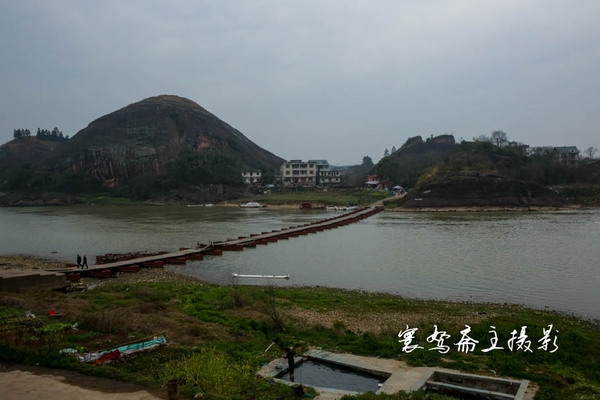 走到江边,就可看见古镇北面著名的九狮山了,但那天天气不好,只远远看见河里的浮桥上还人来人往的......