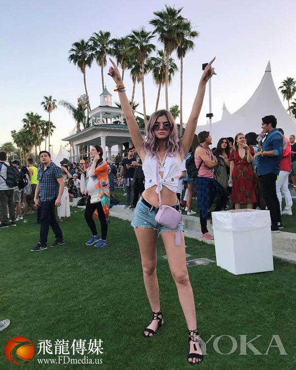 颜值高,身材好自然穿的美,Alissa Violet几日po了出参加音乐节的照片,热裤与top的组合热辣性感,额头上的水钻装更吸睛。