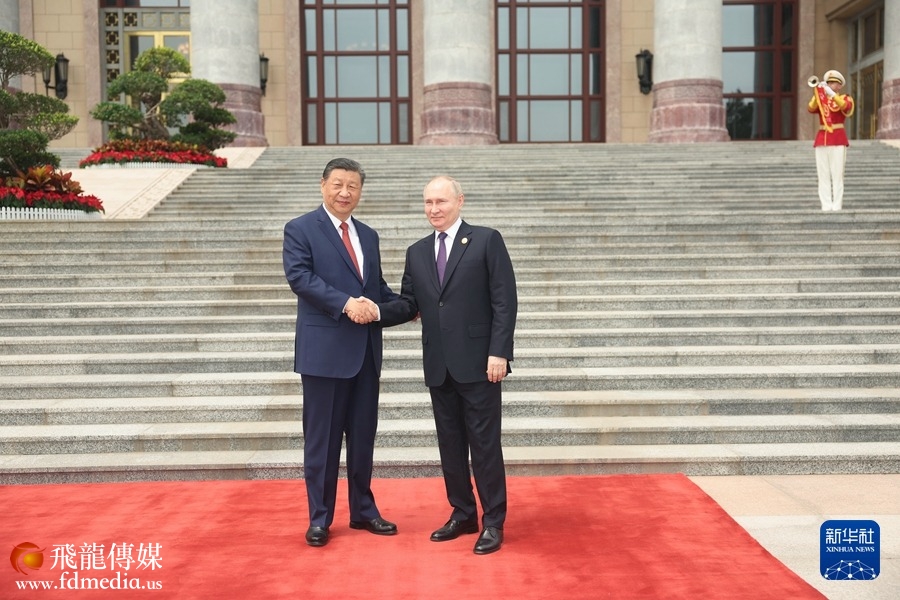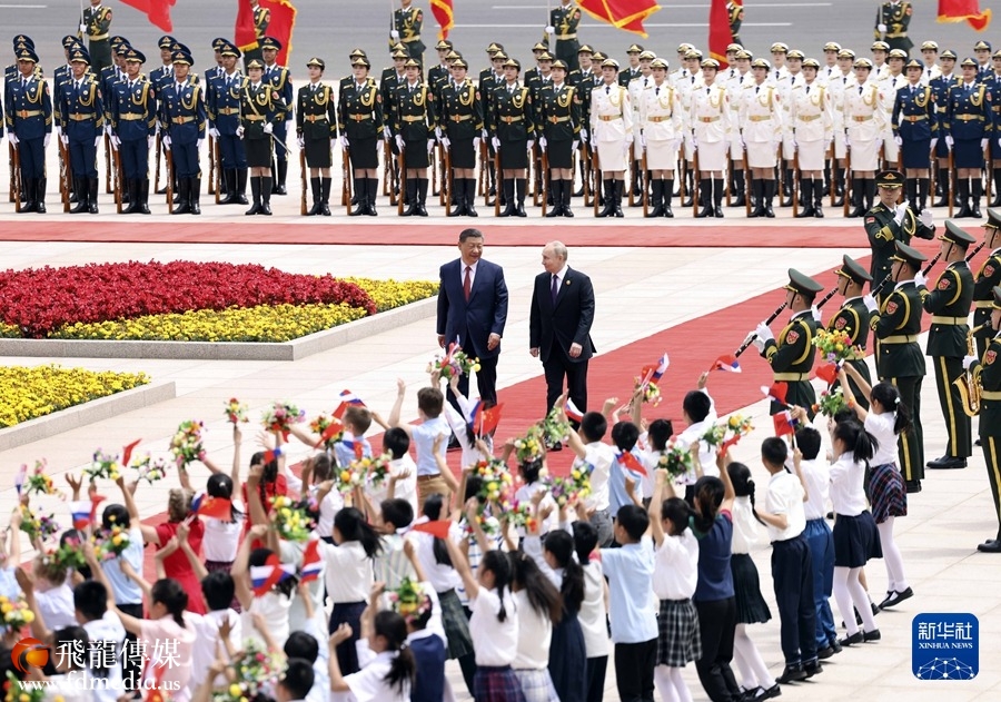 5月16日上午,国家主席习近平在北京人民大会堂同来华进行国事访问的俄罗斯总统普京举行会谈。这是会谈前,习近平在人民大会堂东门外广场为普京举行隆重欢迎仪式。新华社记者 饶爱民 摄