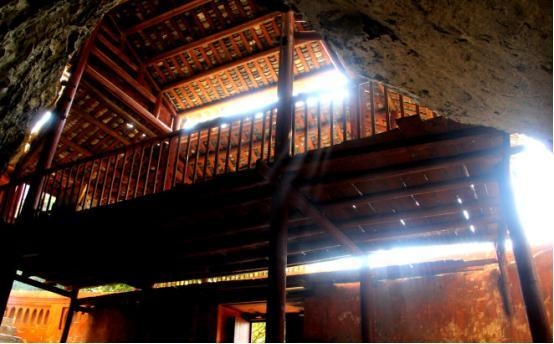 1637年秋,我国明代著名地理学家徐霞客来到此处游览,他在《游记》里写道:“夫此一山,圆如卓锥,其上中空外透,四面成门,堂煌曲室,夹榭飞甍,靡所不备。”他所说的“夹榭飞甍”,用现代话来讲就是“建筑在平台上的有飞檐瓦脊的敞屋”。徐霞客看见的“夹榭”,实际上就是万福寺的雏形。