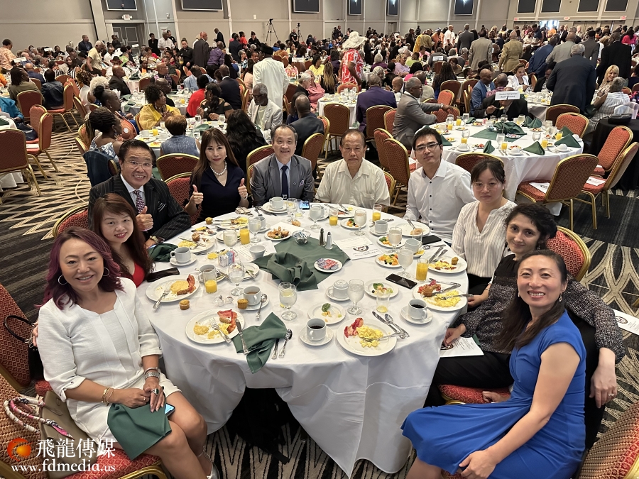 (与会者还有杨万青夫妇、江西同乡会会长谢忠、山东同乡会副会长顾国伟、Controller's Office 社区协调主任芮久玟Joanne Ray、中文电台台长主播美齐)