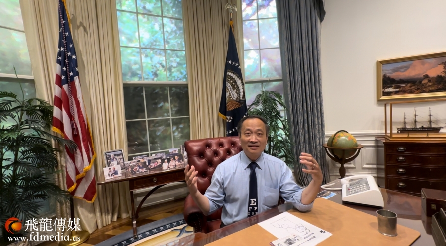 中国人活动中心副董事长、休斯敦中华民乐团创始团长杨万青及夫人陆曦在办公室举办观影