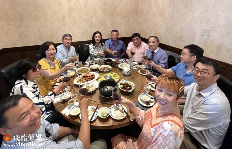 美南新闻报业集团董事长李蔚华和中国人活动中心副董事长杨宝华为王明旭医生接风(出席人包括大休斯敦地区中国联合校友会会长江嶽和凤城酒家Nancy)
