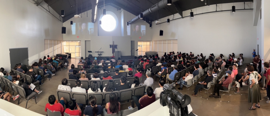 休斯敦华人教会中文主任牧师王Thomas 以及700人观影现场