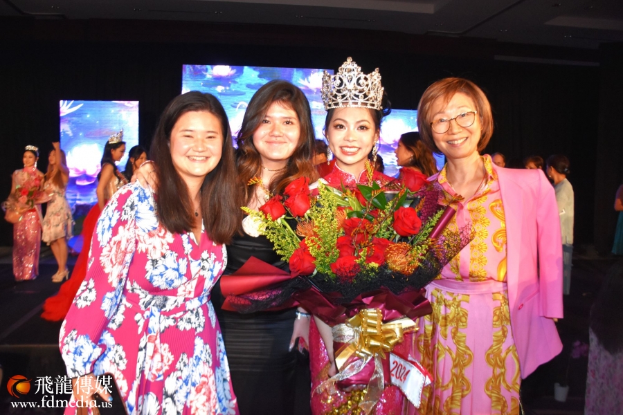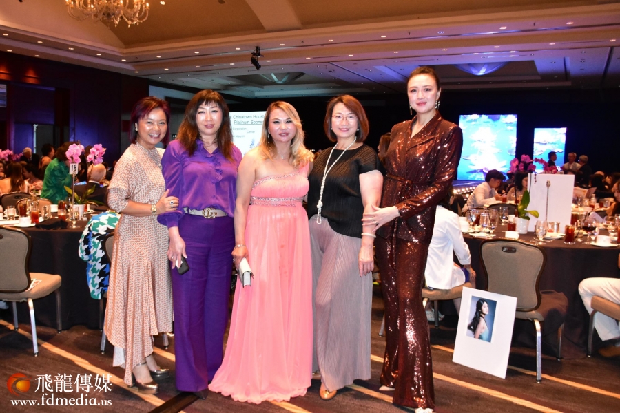 杰出华裔女企业家周蔷、模特艺术培训学校负责人笑琳、HOT MAMA国际大赛创始人陈铁梅应邀出席华埠小姐颁奖晚会。