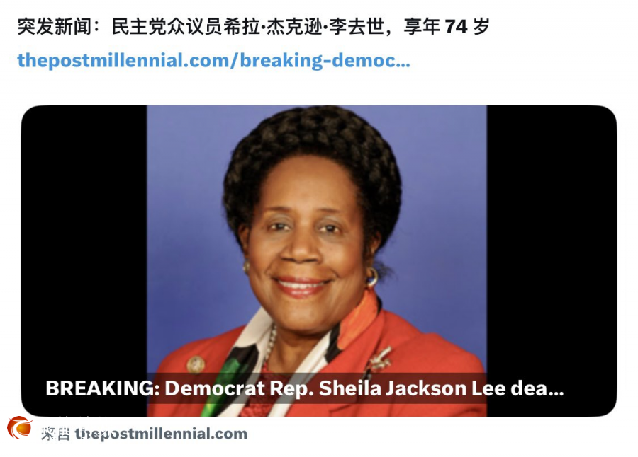 希拉的家人周五在社交媒体X平台上发布消息了她已经去世的消息。“今天,怀着对失去她的无比悲痛和与她共同生活的深深感激之情,我们宣布,德克萨斯州第18选区国会众议员希拉‧杰克逊‧李逝世。”声明中还说:“作为一位地方、国家和国际人道主义者,她因为在种族正义、刑事正义和人权方面的勇敢斗争而在全球范围内受到认可,尤其注重妇女和儿童。”
